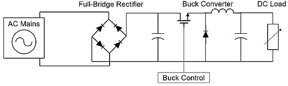 Most domestic appliances, power adapters, and sensor devices such as smoke alarms are powered by AC wall sockets. Because these loads require a constant DC voltage to function, AC/DC conversion between the AC source and the loads is required. This conversion can be accomplished with a non-isolated buck-converter, as shown in below schematic, or through isolated topologies like flyback converters.