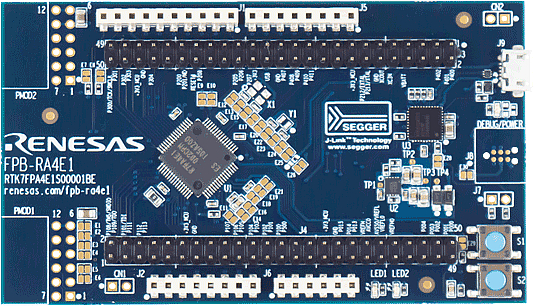 Support for developers is provided with the RA4E1 Fast Prototyping Board which comes equipped with a R7FA4E10D2CFM microcontroller and is an evaluation board specialized for prototype development in a variety of applications. The board has a built-in SEGGER J-Link™ emulator circuit so developers can write/debug programs without additional tools. In addition, with the integrated Arduino Uno and Pmod™ interfaces included as standard and through-hole access to all pins of the microcontroller the board is not only flexible but has high expandability. Sample software is available to demonstrate the functionality of the RA4E1 MCU and for connecting between the RA4E1 Fast Prototyping Board and various wireless modules or various sensor modules.