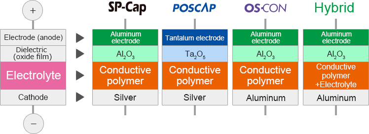 Polymer Capacitor family overview by construction