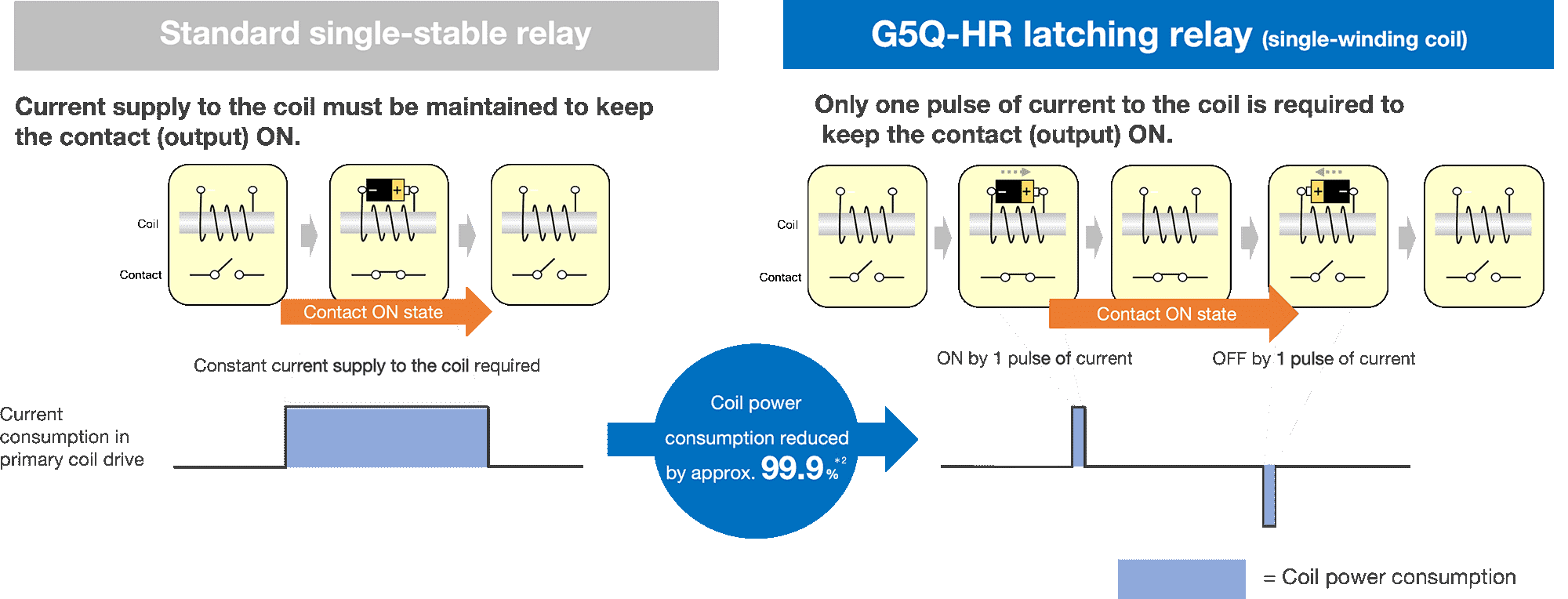 Available in coil voltages from 3V to 24 VDC the new -HR type includes option of stable, single or double winding latching contacts. The addition of latching contact options help meet the demand for energy saving making the relays suitable for applications requiring high efficiency when in standby mode or when used in battery operated equipment.