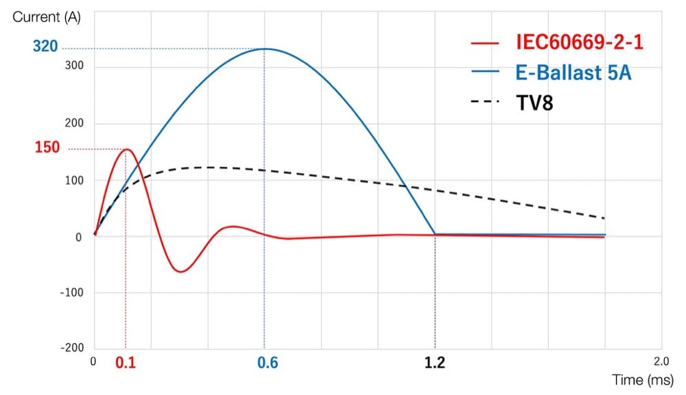 The G5Q-HR range has been designed to meet various high inrush standards including TV-8 (Peak inrush 117A / Break 8A 120 VAC), E Ballast 3A & 5A 277 VAC and IEC60669-1 (3A 277 VAC Capacitor 35uF).