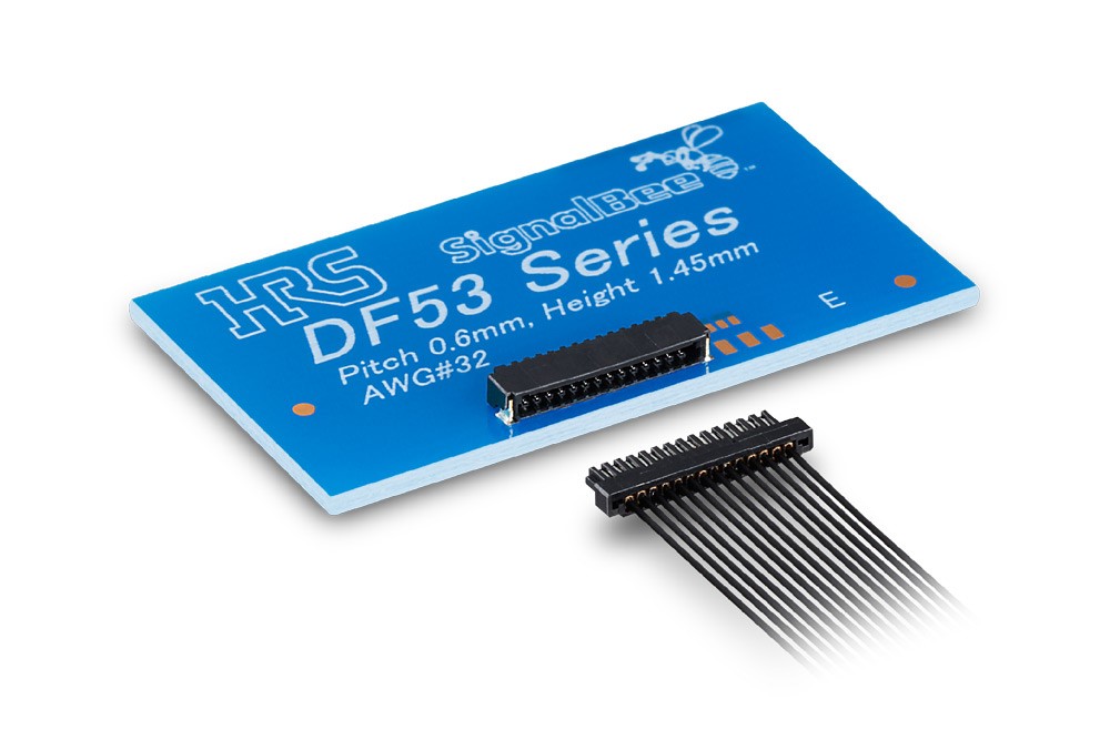 The DF53 series is the industry's smallest 0.6mm pitch crimp connector. Supporting 1.3A Max., makes it ideal for connecting batteries in applications with space constraints such as wearable devices. The DF53 series achieves both downsizing and robust construction. Available in right angle configuration the DF53 series is offered in 2 to 20 positions.